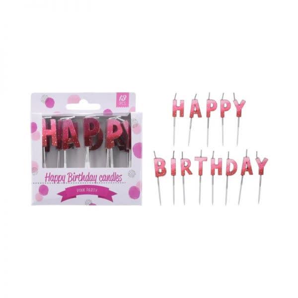 Κεριά τούρτας Happy Birthday ροζ (13 τεμ.)