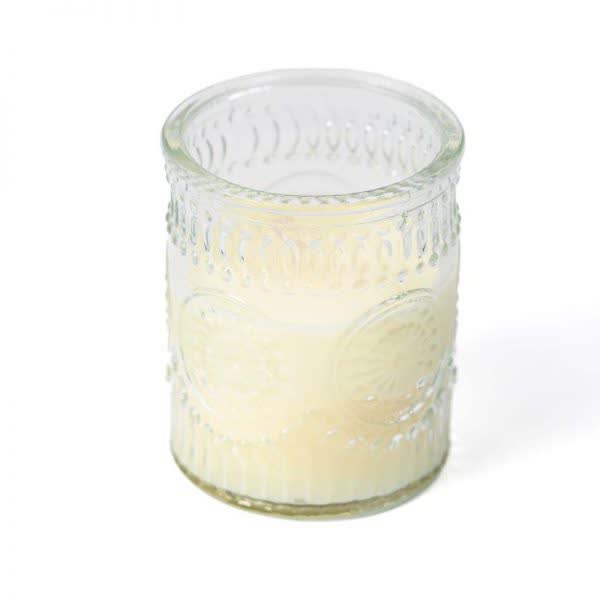Κηροπήγιο με κερί γυάλινο ανάγλυφο 5,5 εκ. χ 7 εκ. λευκό (1 τεμ.)