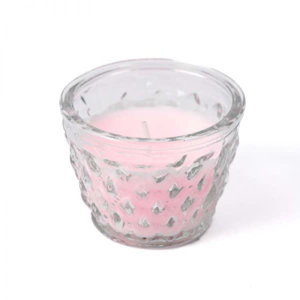 Κηροπήγιο με κερί γυάλινο ανάγλυφο 7 εκ. χ 5 εκ. ρόζ (1 τεμ.)