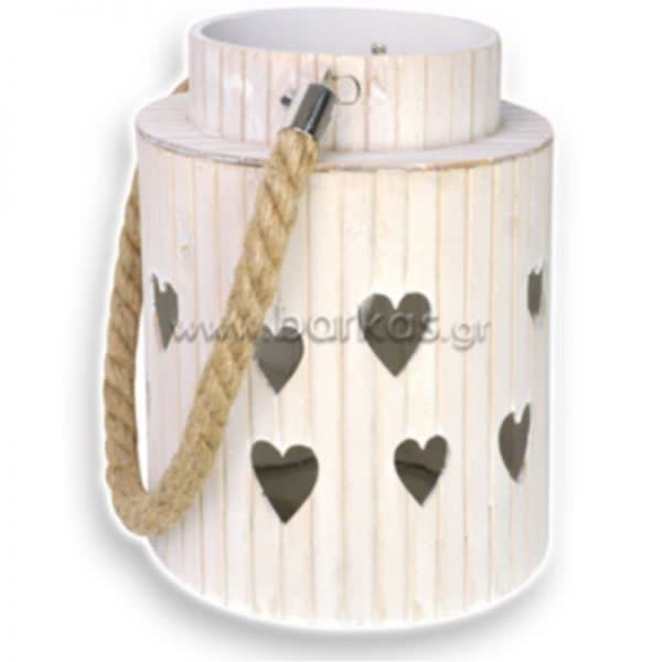 Κηροπήγιο στρογγυλό με καρδιές άσπρο αντικέ