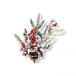 Κλαδί πράσινο με κουκουνάρι και ξύλινο αστέρι σε κλιπ 22 εκ. (2 τεμ.)