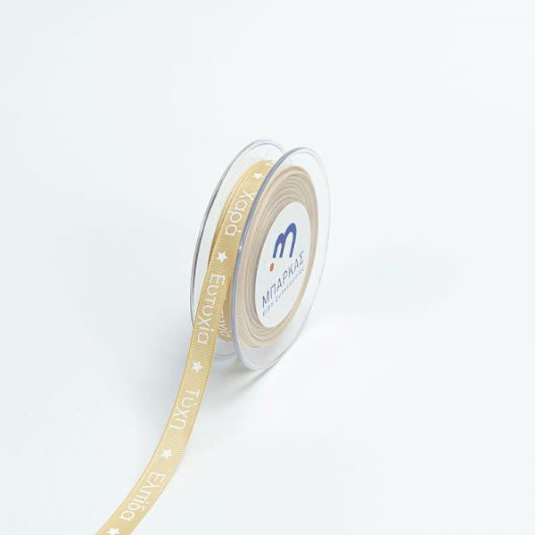 Κορδέλα Χριστουγεννιάτικη γκρο με ευχές χρυσό (Αγάπη – Υγεία – Ευτυχία – Χαρά – Ελπίδα)