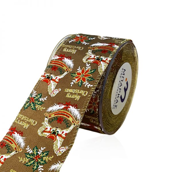 Κορδέλα Χριστουγεννιάτικη με αλογάκι μπέζ 6,7 cm. x 9 m. (1 τεμ.)