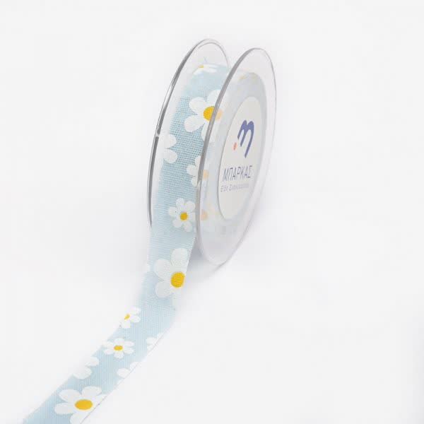 Κορδέλα υφασμάτινη με μαργαρίτες σε σιέλ χρώμα 2,3 εκ. Χ 9 μ.