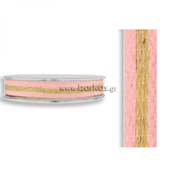 Κορδέλα γιούτα διαγωνάλ ροζ. Διάσταση 2,5εκ. x 9,1μ.