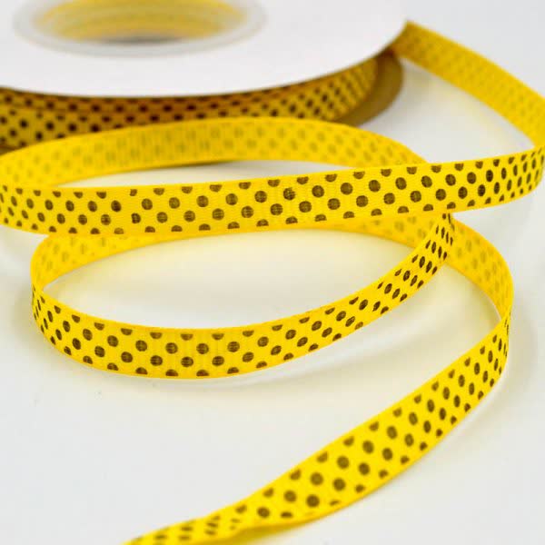 Κορδέλα Γκρο με εκτύπωση μαύρο πουα (6χιλ. x 25μ.) – Κίτρινο