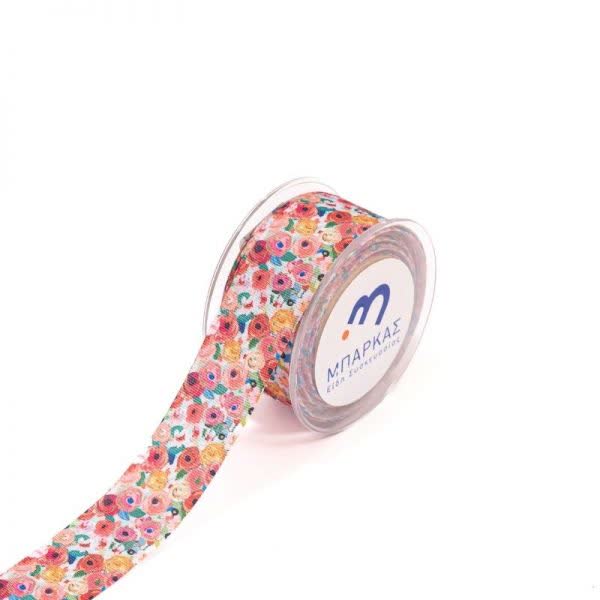 Κορδέλα γκρο canvas με λουλούδια 3,8 εκ. x 9 μ. (1 τεμ.)