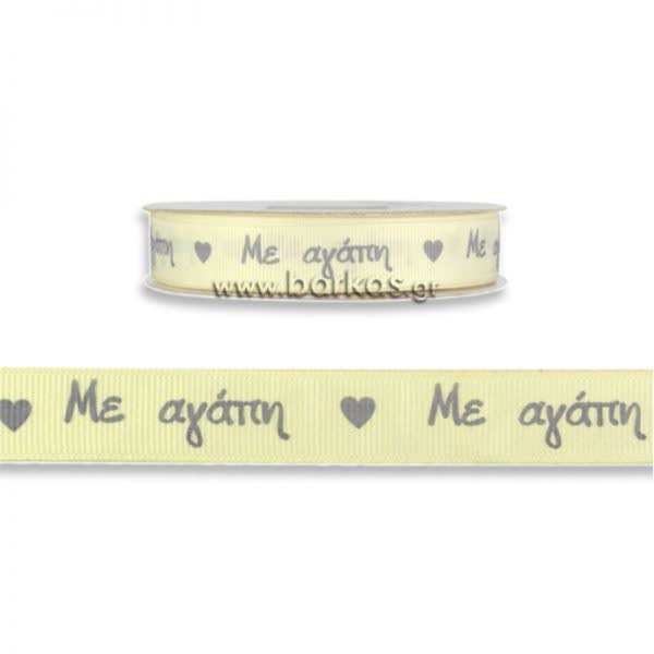 Κορδέλα γκρό Με Αγάπη εκρού με γκρί εκτύπωση.