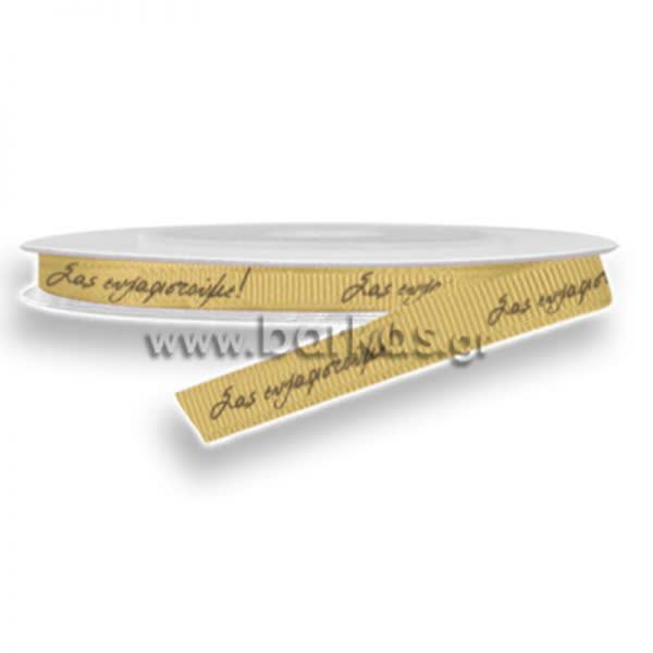 Κορδέλα γκρό Σας ευχαριστούμε χρυσό με γκρί εκτ. 6mm. x 50m.