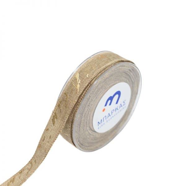 Κορδέλα με ανάγλυφα χρυσά σχέδια φυσικό 2,3 εκ. x 9 μ. (1 τεμ.)