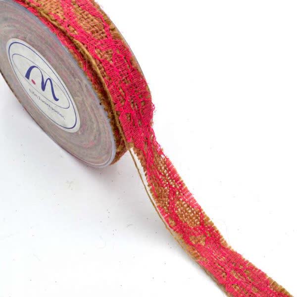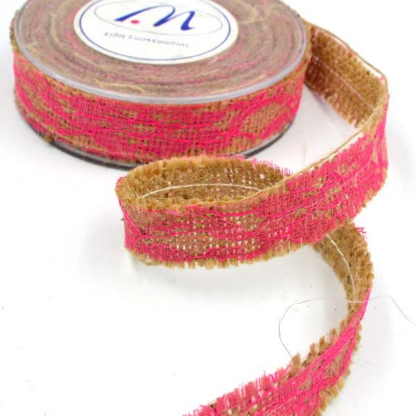 Κορδέλα λινάτσα δαντέλα φούξια 2,5εκ. Χ 9,1μ.