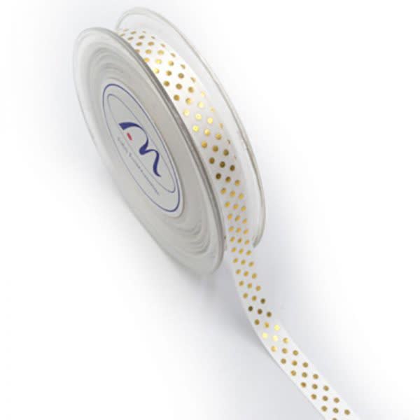 Κορδέλα σατέν πουά λευκή.Διάσταση: 1,3εκ. x 18μ.