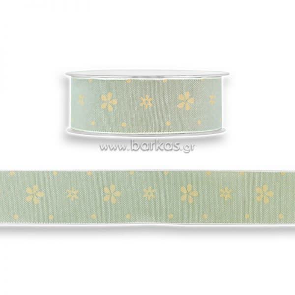 Κορδέλα βαμβακερή με λουλούδια πράσινη 2,5εκ. x 5,5μ.