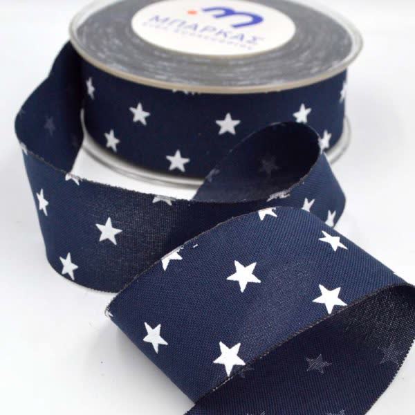 Κορδέλα βαμβακερή μπλέ σκούρο με αστέρια 3,5εκ. Χ 20μ.