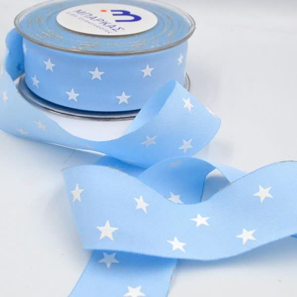 Κορδέλα βαμβακερή σιέλ με αστέρια 3,5εκ. Χ 20μ.