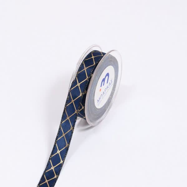 Κορδέλα Χριστουγεννιάτικη Diamond check μπλέ – χρυσό