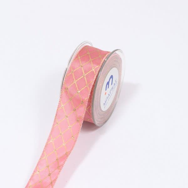 Κορδέλα Χριστουγεννιάτικη Diamond check ροζ – χρυσό 4,3 εκ. x 9 μ.