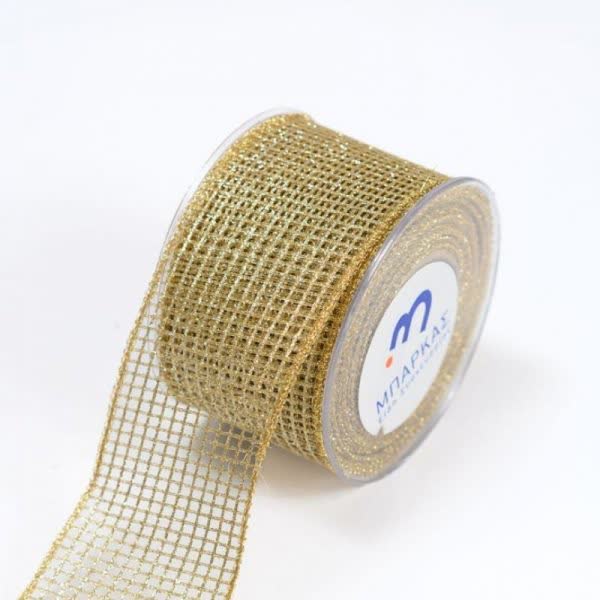 Κορδέλα Χριστουγεννιάτικη δίχτυ με γκλίτερ χρυσό 6,7 cm. x 9 m. (1 τεμ.)