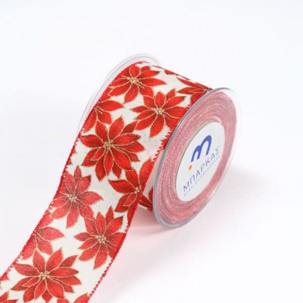 Κορδέλα Χριστουγεννιάτικη με αλεξανδρινά και σύρμα 6,7 cm. x 9 m. (1 τεμ.)