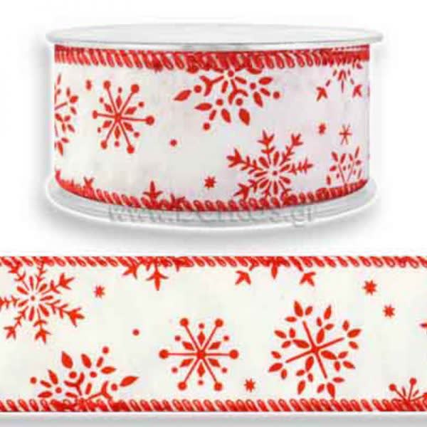 Κορδέλα χριστουγεννιάτικη Νιφάδες κόκκινες.