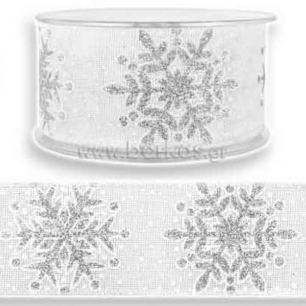 Κορδέλα χριστουγεννιάτικη Shinny Snowball ασημί.