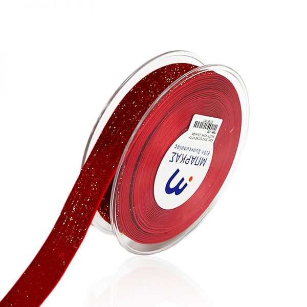 Κορδέλα χριστουγεννιάτικη βελούδο κόκκινη με χρυσή κλωστή