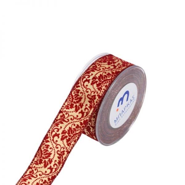 Κορδέλα Χριστουγεννιάτικη vintage μπορντό – μπεζ 4,3 εκ. x 9 μ. (1 τεμ.)