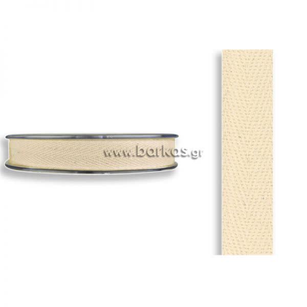 Κορδέλα υφασμάτινη ψαροκόκκαλο λευκό. Διάσταση 1,5εκ. x 18μ.