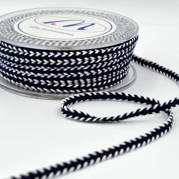 Κορδόνι βαμβακερό Babyland λευκό – μπλέ σκούρο 0,6εκ. Χ 18,2μ.