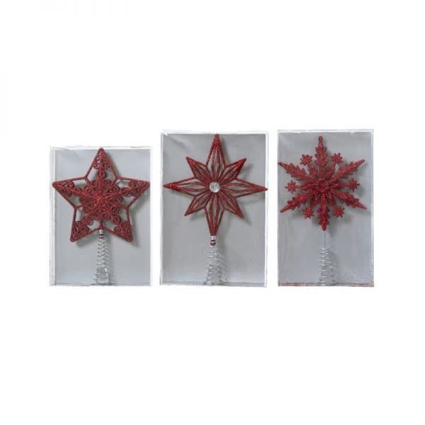 Κορυφή δέντρου κόκκινη σε 3 σχέδια (αστέρια, χιονονιφάδα)