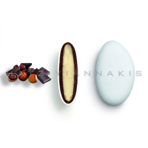 Κουφέτα Χατζηγιαννάκη Together Gianduia με λευκή σοκολάτα και σοκολάτα (55% κακάο) και λεπτή επικάλυψη ζάχαρης.
