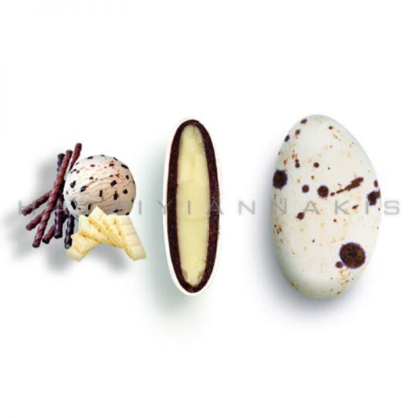 Κουφέτα Χατζηγιαννάκη Together Stracciatella με λευκή σοκολάτα και σοκολάτα (55% κακάο) και λεπτή επικάλυψη ζάχαρης.