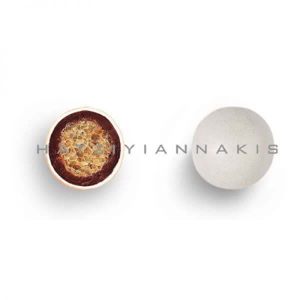 Κουφέτα Χατζηγιαννάκη Crispy Λευκό με τραγανό πυρήνα από δημητριακά & σοκολάτα γάλακτος µε λεπτή επικάλυψη ζάχαρης.