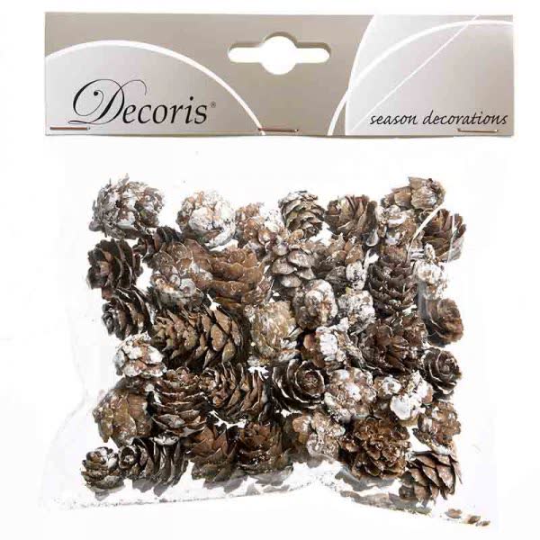 Κουκουνάρια αποξηραμένα σε καφέ χρώμα με χιόνι