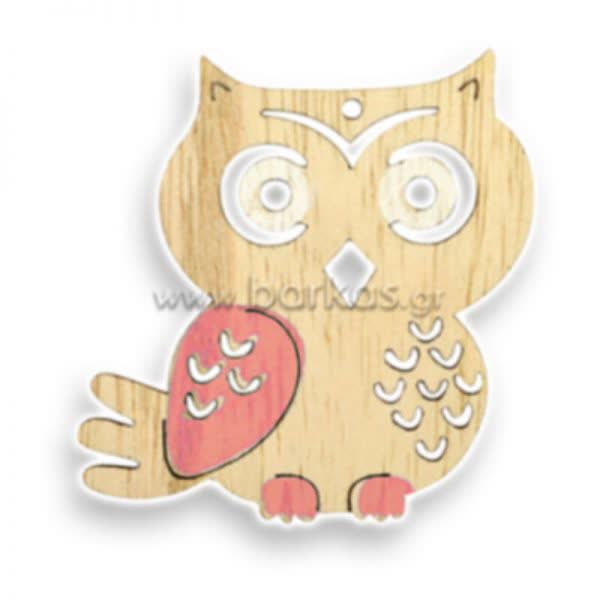 Κουκουβάγια ξύλινη μικρή ροζ – φυσικό 5εκ.