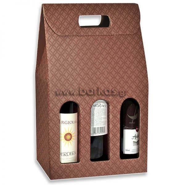 Κουτί χάρτινο για τρία μπουκάλια με παράθυρο.