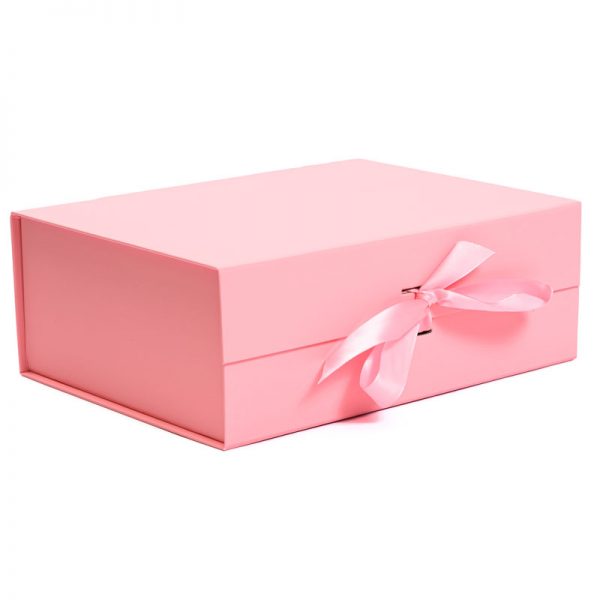 Κουτί χάρτινο ρόζ με κορδέλα, ανοιγόμενο 33 εκ.x 25 εκ. x 12 εκ. (1 τεμ.)