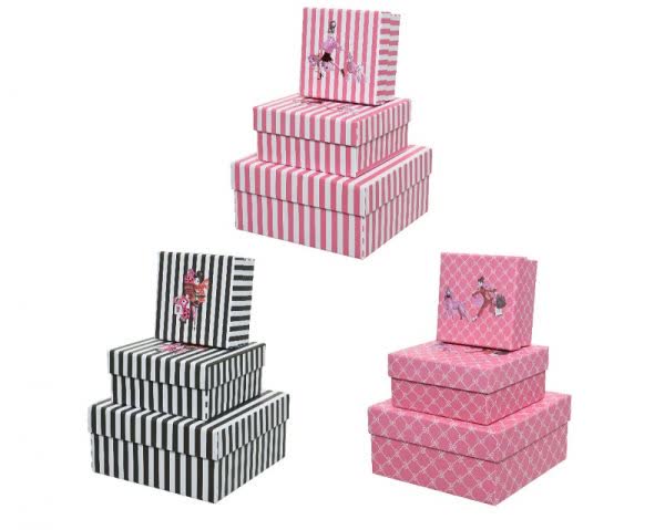 Κουτί τετράγωνο με κοπέλα και σκυλάκι με ρίγες σε 3 σχέδια