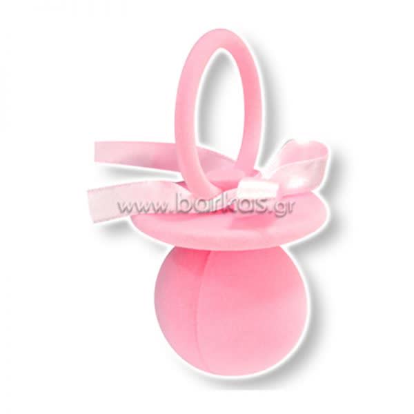 Κουτί κοσμημάτων βελουτέ πιπίλα ροζ και φιογκάκι