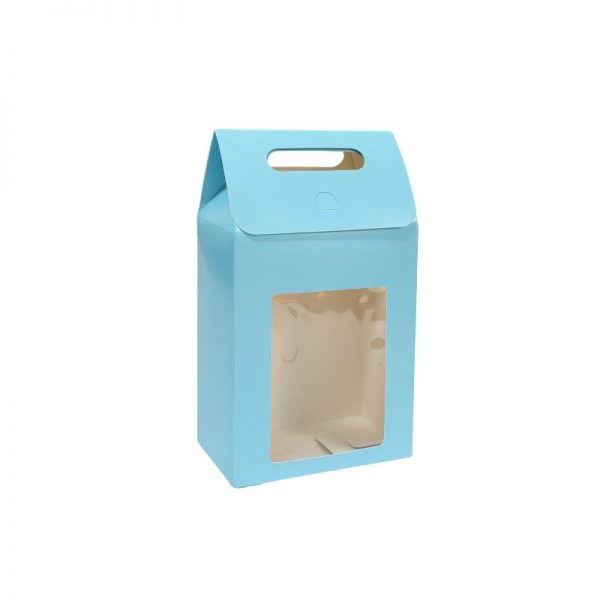Κουτί – τσαντάκι χάρτινο με παράθυρο σιέλ 20,5 εκ. x 13,5 εκ. x 8 εκ. (12 τεμ.)