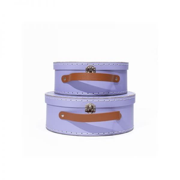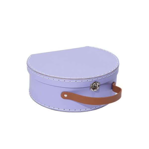 Κουτί – βαλίτσα χάρτινη λιλά – μωβ με χεράκι δερματίνης