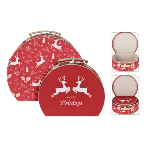 Κουτί – βαλίτσα χριστουγεννιάτικη χάρτινη κόκκινη με ταρανδάκια