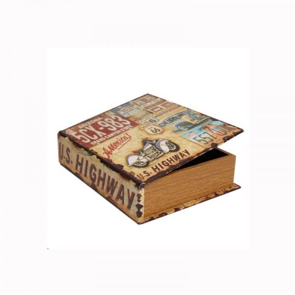 Κουτί βιβλίο ξύλινο vintage travel 19 εκ. x 14 εκ. x 4 εκ. ( 1 τεμ.)