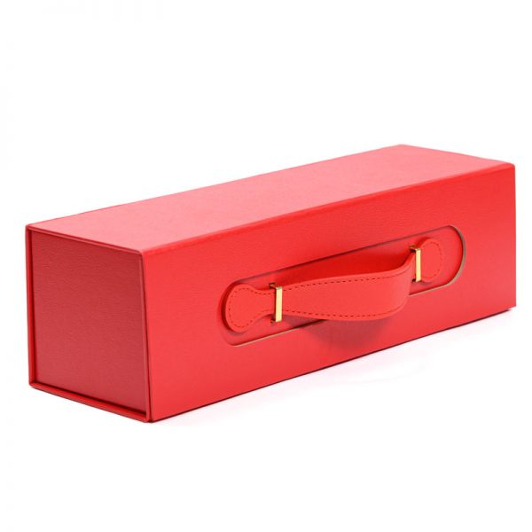 Κουτί χάρτινο κόκκινο με χεράκι, ανοιγόμενο για φιάλη