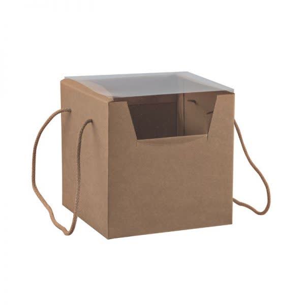 Κουτί Χάρτινο κύβος κράφτ με παράθυρο και κορδόνι