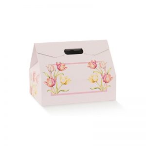 Κουτί χάρτινο με λουλούδια ρόζ (1 τεμ.)