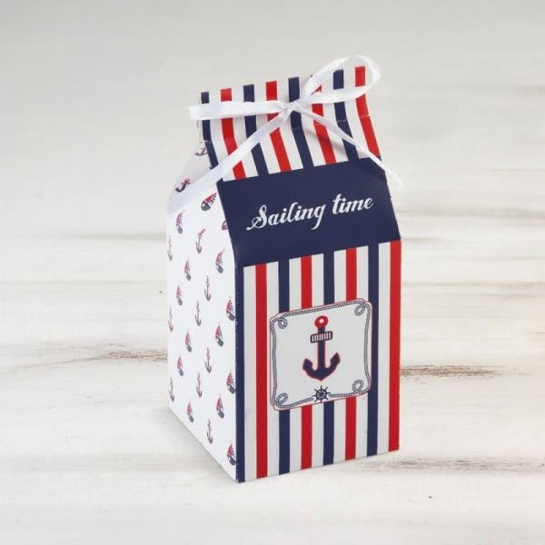 Κουτί χάρτινο τύπου milkbox με κορδέλα και σχέδιο άγκυρα