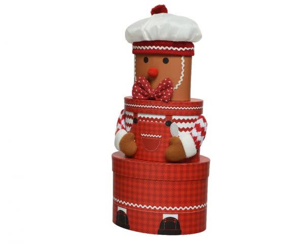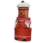 Κουτί Χριστουγεννιάτικο με επίπεδα Gingerbread με υφασμάτινες λεπτομέρειες. 43 εκ. (3 τεμ.)
