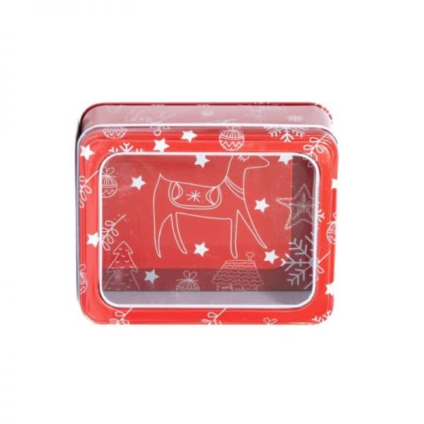 Κουτί Χριστουγεννιάτικο μεταλλικό με παράθυρο τάρανδος 13,5 εκ. x 11 εκ. x 5 εκ. (1 τεμ.)