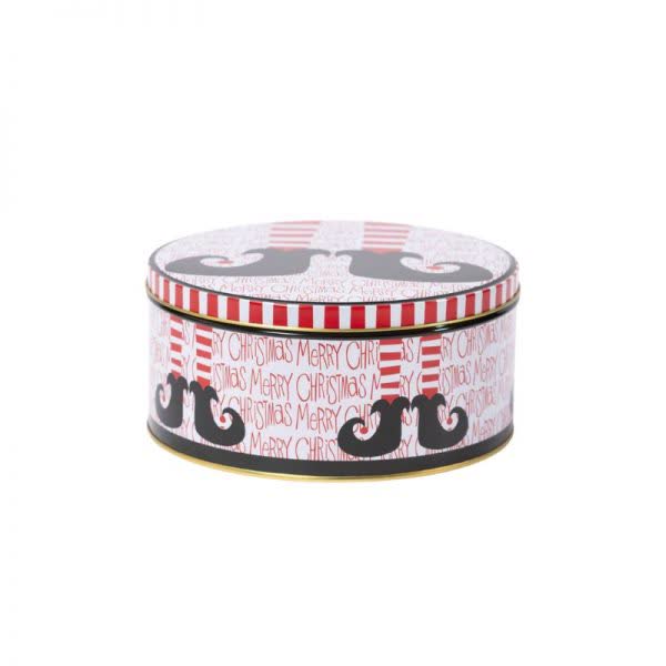 Κουτί Χριστουγεννιάτικο μεταλλικό στρογγυλό πόδια ξωτικού 16,8 εκ. x 8,3 εκ. (1 τεμ.)